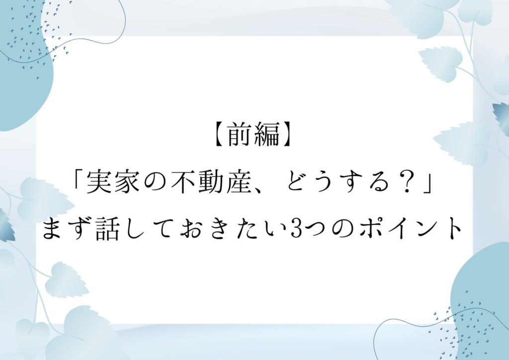 【前編】「実家の不動産、どうする? 」まず話しておきたい3つのポイント
