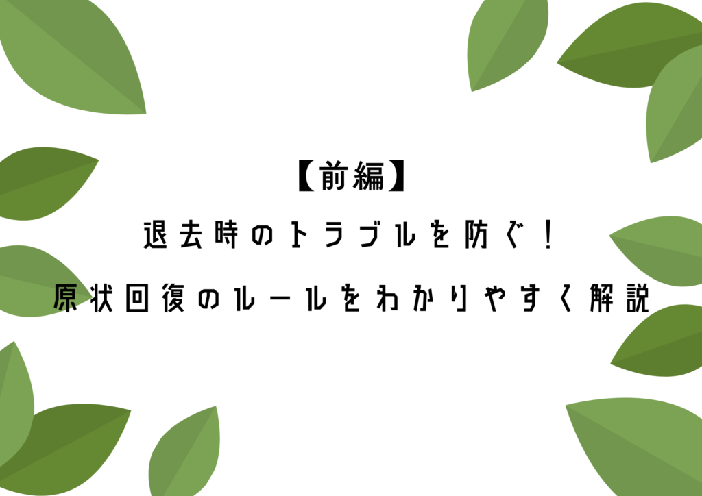 【前編】退去時のトラブルを防ぐ!原状回復のルールをわかりやすく解説